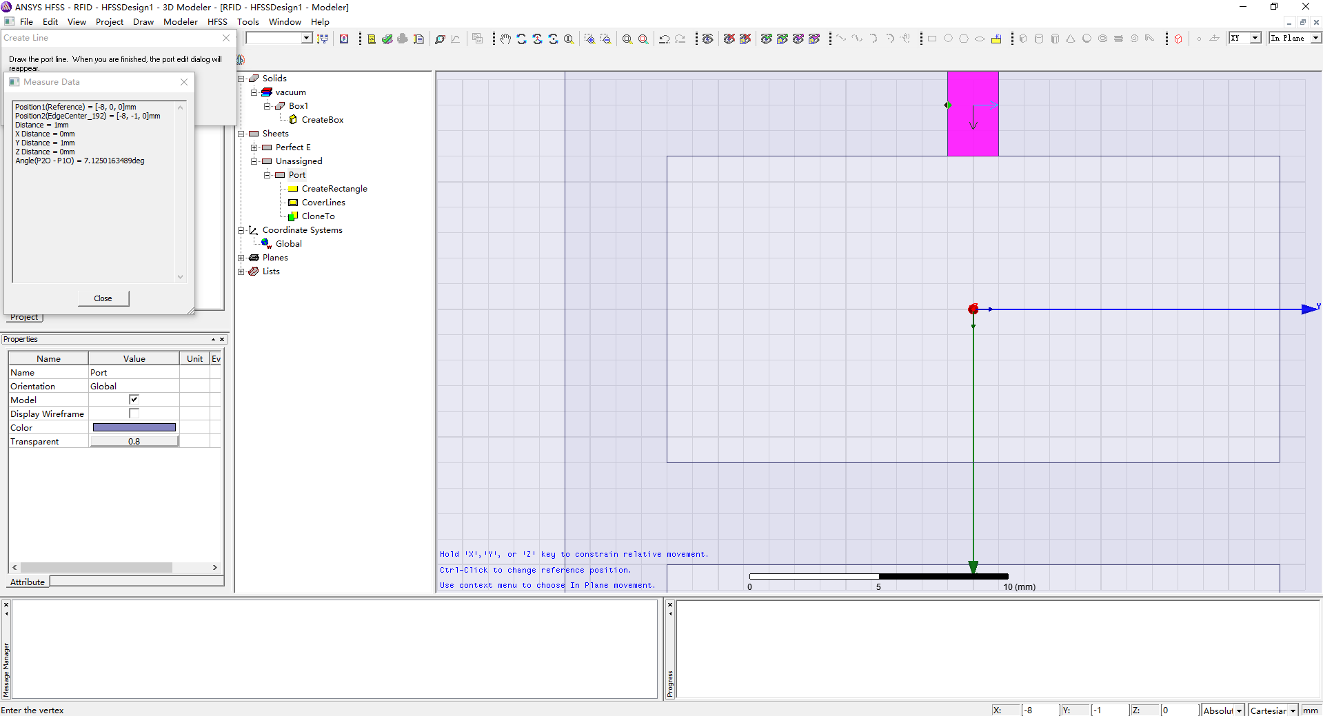 选择Integration Line-New line后,在坐标上设置积分线,整个积分线跨越整个端口,如下图所示。