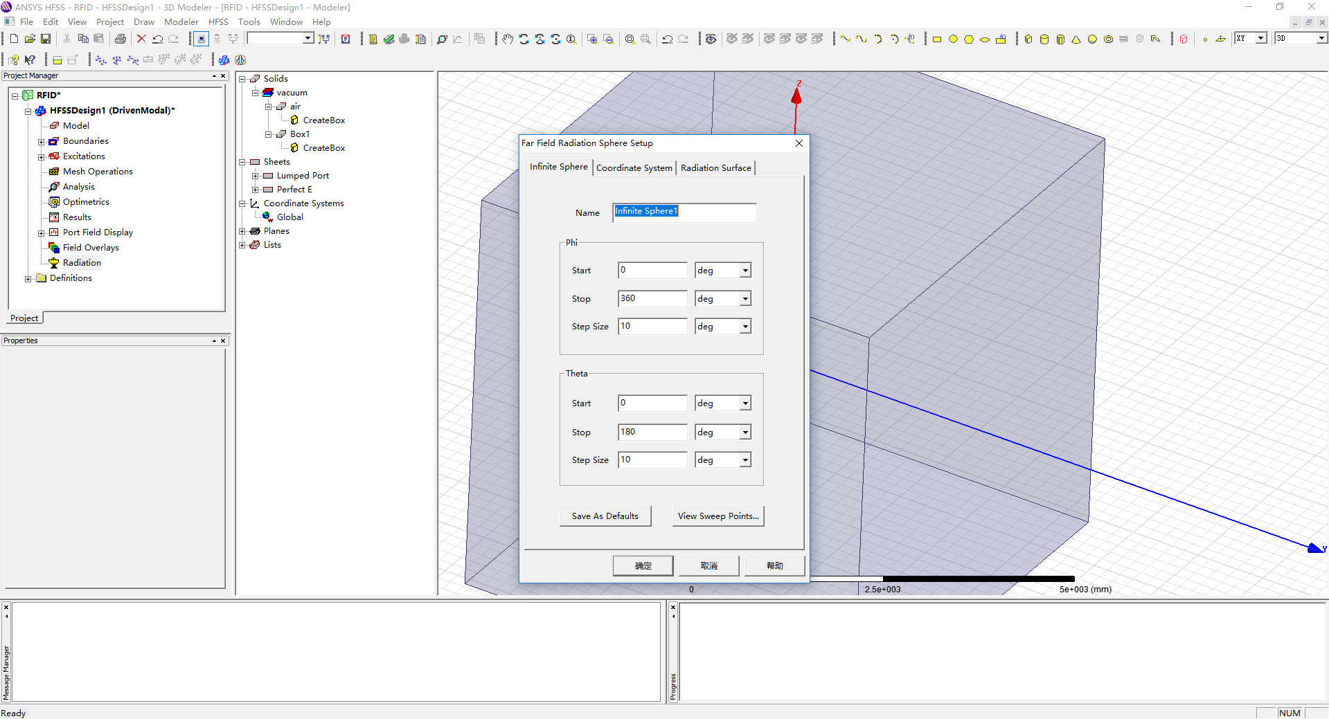 要查看天线方向图的结果,需要设置辐射表面,如下图所示。