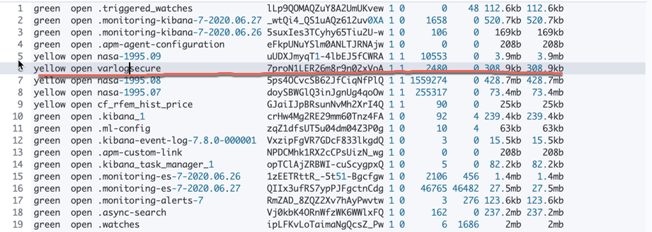 运行完上面的 Filebeat 后,我们可以在 Elasticsearch 中找到最新生成的 varlogsecure 索引: