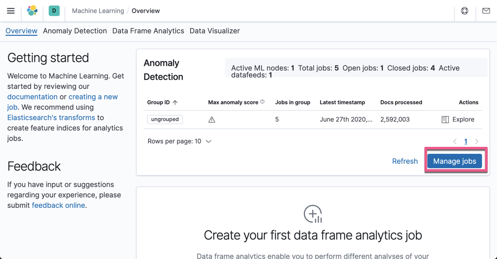 点击 Manage jobs 或者 Create jobs (如果你从来还没有创建过机器学习作业)。