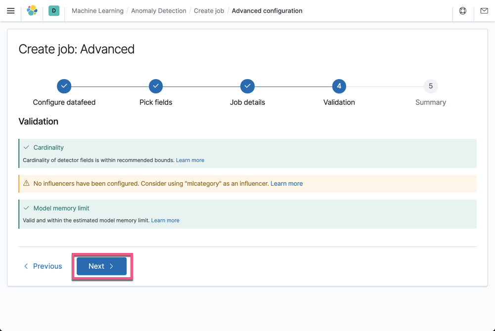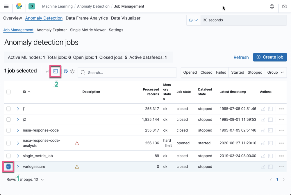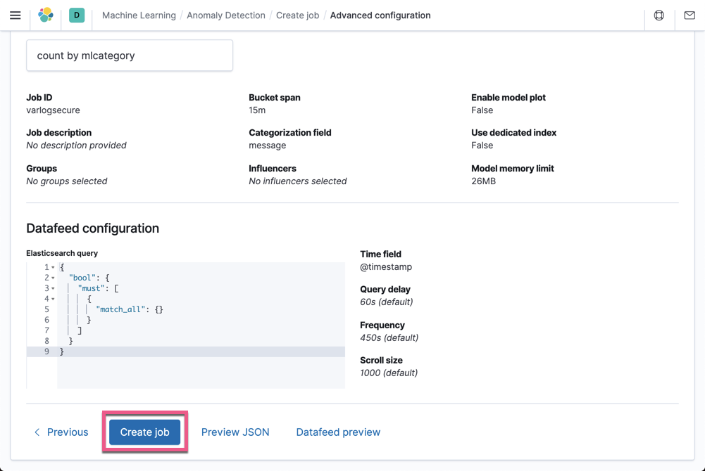 这些类别的命名很简单:ML 只会将它们称为 mlcategory N,其中N是递增的整数。 因此,在此示例中,前两行将与 mlcategory 1 关联,第三行将与 mlcategory 2 关联。在现实的机器日志中,可能会生成数千(甚至数万)个类别 由于日志消息的多样性,但是可能类别的集合应该是有限的。 但是,如果类别的数量开始达到数十万,那么很显然,日志消息不是一组有限的消息类型,因此也不适合用于这种类型的分析。