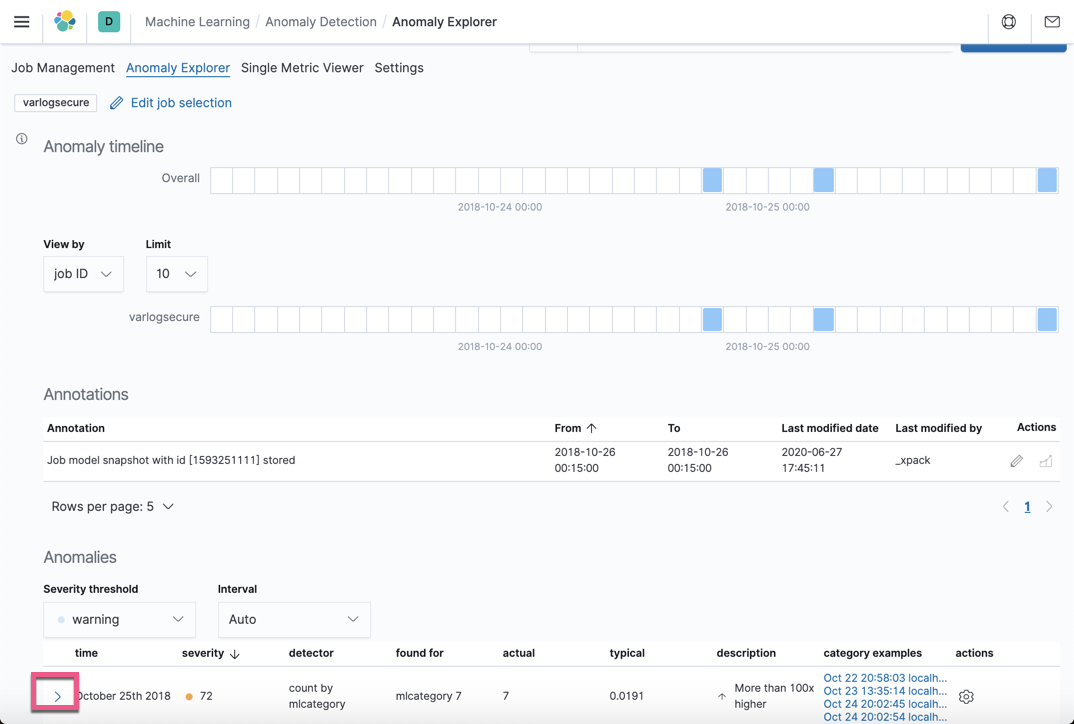 在这里,我们可以看到一些异常出现了。打开上面的 October 25th, 2018 这个异常事件: