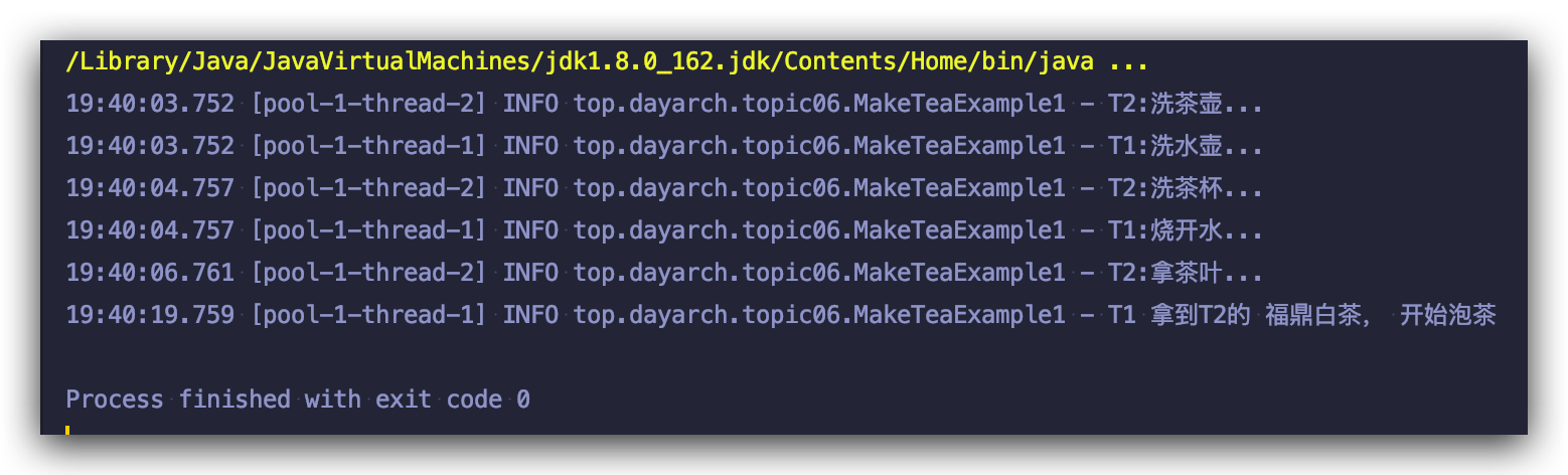 log.info("T1 拿到T2的 {}, 开始泡茶", t2Result);