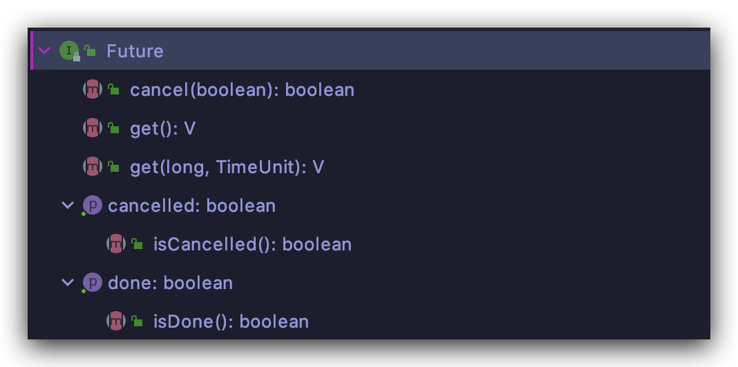 Future 又是一个接口,里面只有五个方法: