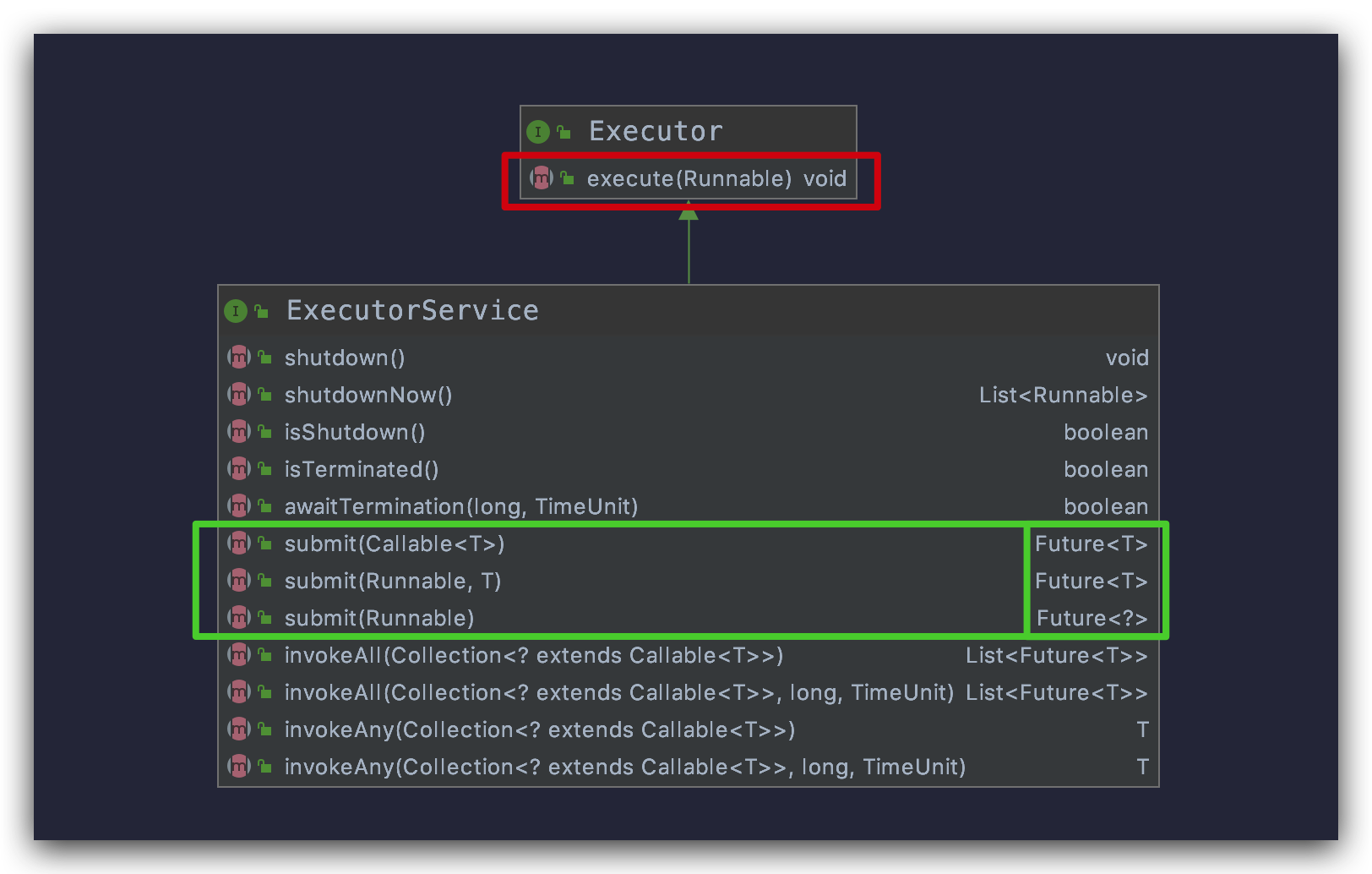 先来看一下 ExecutorService 类图