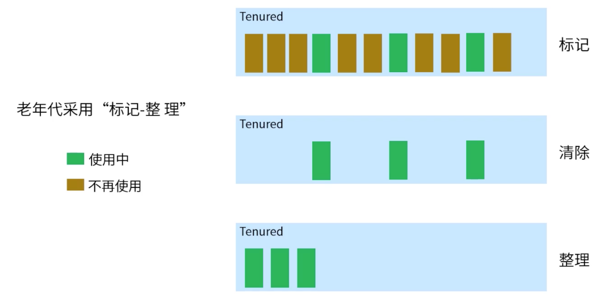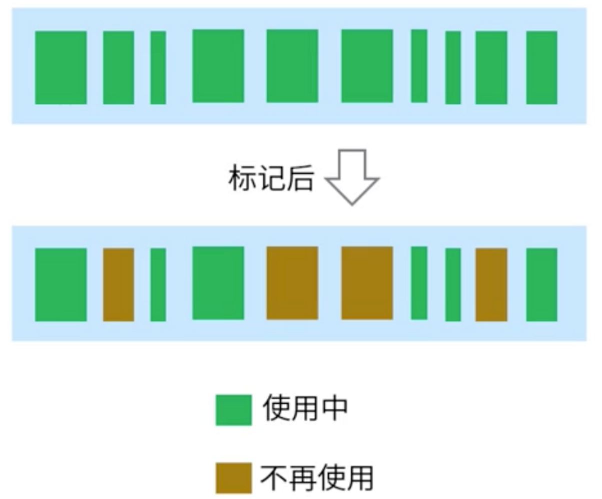 - 标记、清除过程效率有限,有内存碎片化问题,不适合特别大的堆。