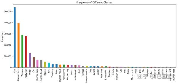 快速浏览一下训练图像,发现某些对象出现的次数比其他对象更多。上图显示了前43个类别的分布情况。很明显,存在巨大的差异,需要以某种方式解决。为了节省时间和金钱(GPU成本很高),我们选择了前面提到的43个对象类别,得到这些对象的大约300K张图像的子集。我们在训练数据中为每个对象类别提供了大约400个图像。