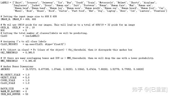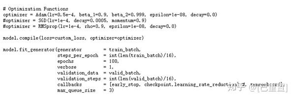 YOLO的优点在于它使用了易于用优化函数优化的误差,例如随机梯度下降(SGD)、带动量的SGD或Adam等。下面的代码片段展示了我们用于优化代价函数的参数。