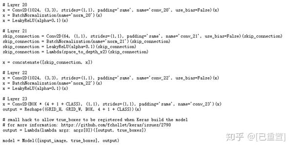 YOLO v2架构的最后几层(仅用于说明目的)