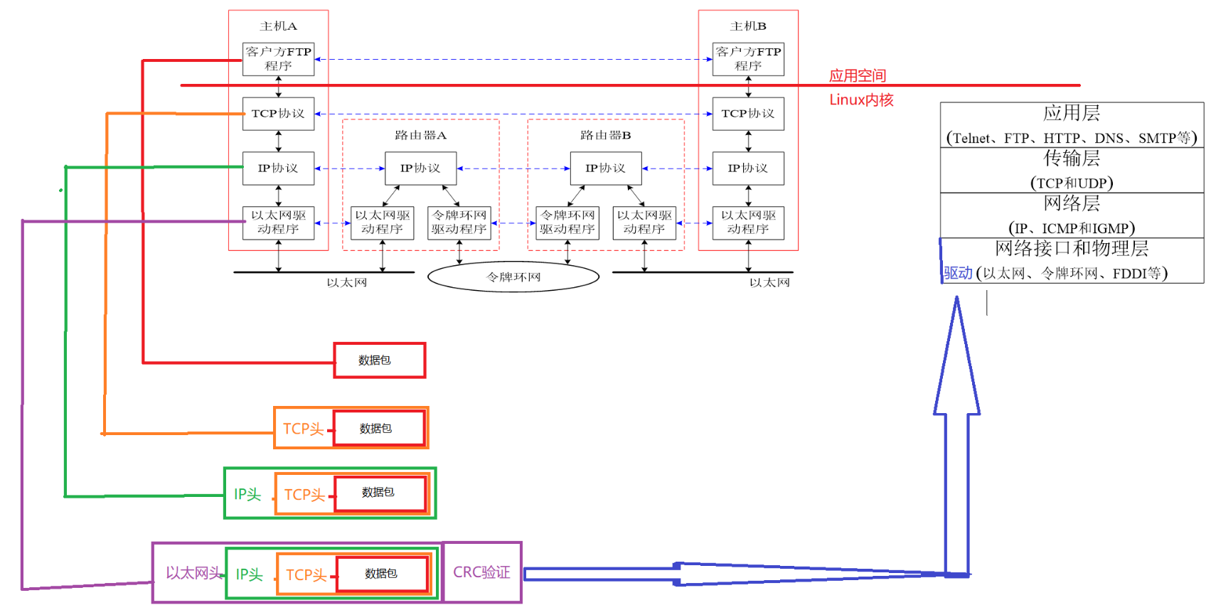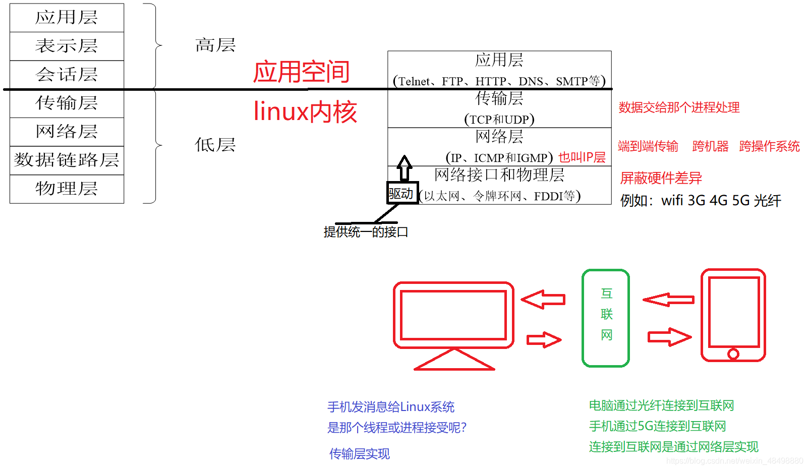联网协议: 定义如何在一个网络上传输信息的一组规则。 网络采用分层思想
