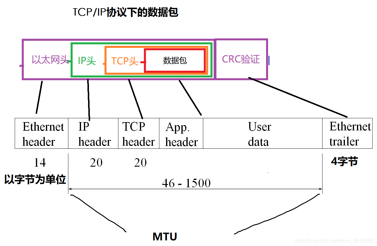 缺省MTU=1500Byte,这是以太网接口对IP层的约束 如果IP层有<=1500字节需要发送,