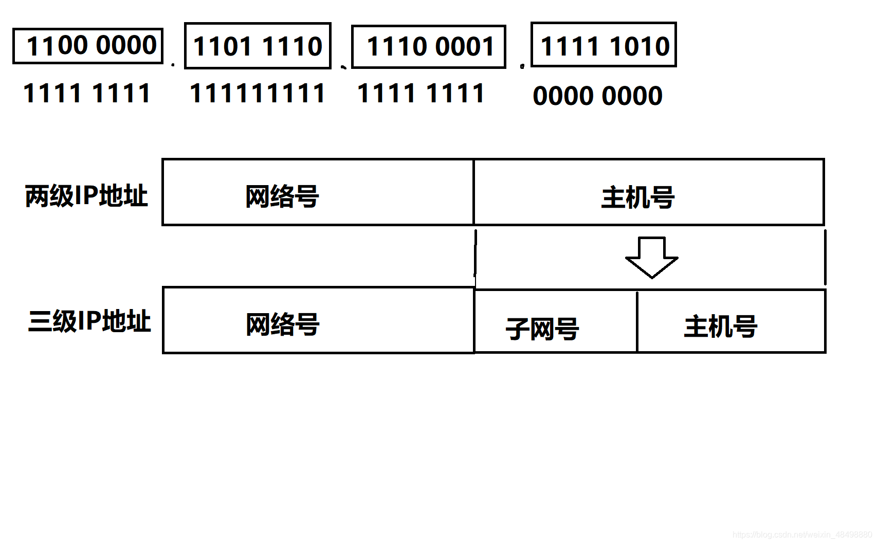 由于两级的IP地址存在灵活性差问题,把主机号进一步划分。