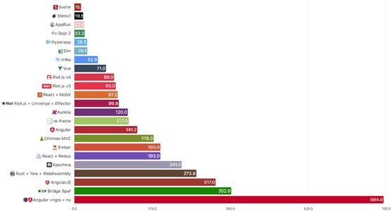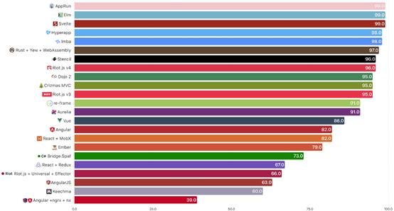 通过Lighthouse Aud,可以看到在今年未维护/未更新的应用程序跌破90关口。当然如果得分> 90,可能也不会有很大的不同。AppRun,Elm和Svelte的表现令人印象深刻。