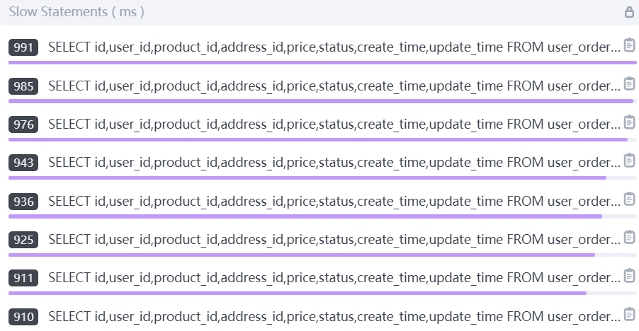 在涉及到数据库的链路跟踪里面,通常希望将执行时间慢的SQL语句统计出来,这样的话能更快的定位问题。
