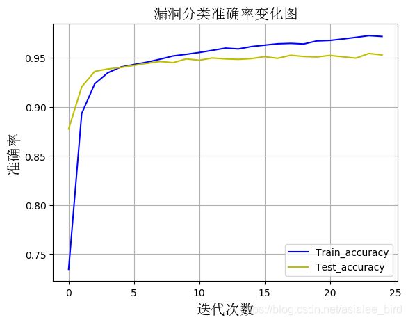 2、随着模型训练迭代次数的增加,模型在测试集上准确率变化图