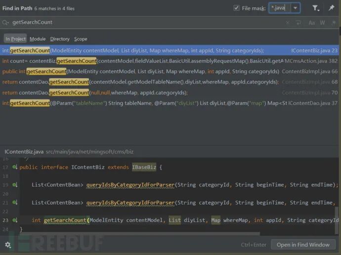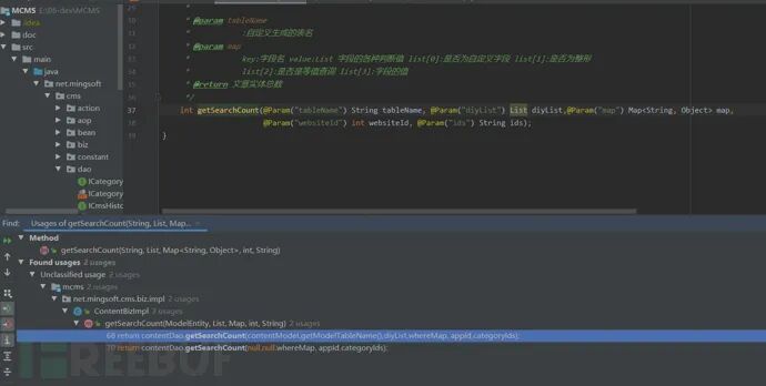 找到ids为getSearchCount的最后一个参数,alt+f7查看调用链
