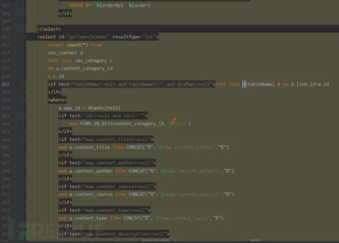 我们使用一个开源的cms来分析,java sql注入问题适合使用反推,先搜索xml查找可能存在注入的漏洞点→反推到DAO→再到实现类→再通过调用链找到前台URL,找到利用点,话不多说走起