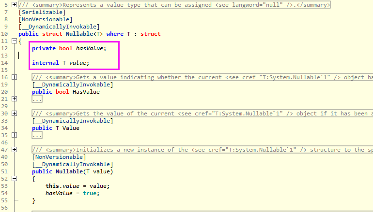 这IL代码还是非常易懂的,比汇编简单多啦(┬_┬),可以看到int ? 就是 System.Nullable<int32> ,然后从valuetype 标记可以看到这玩意是个值类型,所以把上面的代码回转成C#代码就是下面这样。