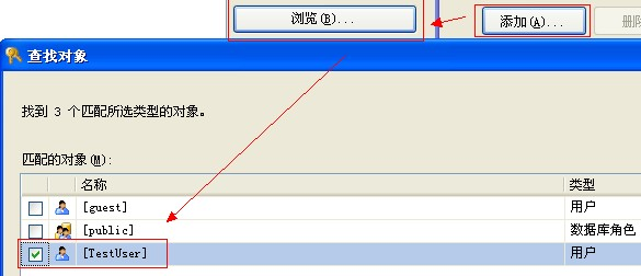 5. 在【权限】选项卡中,如下图所示,依此点击【添加】-【浏览】-【选择对象】