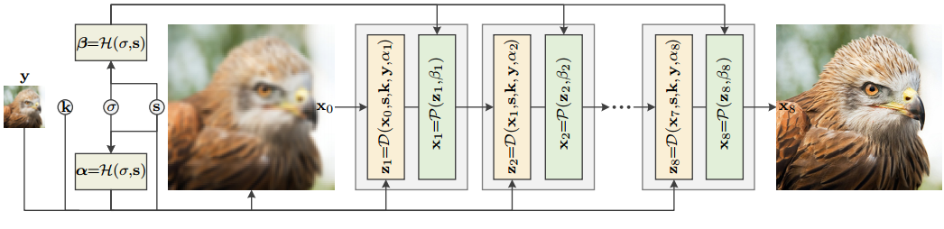 3) USRNet 本质上强加了一个退化约束(即,估计的 HR 图像应符合退化过程) 和一个先验约束 (即,估计的 HR 图像应该具有自然特征) 上的解决方案。