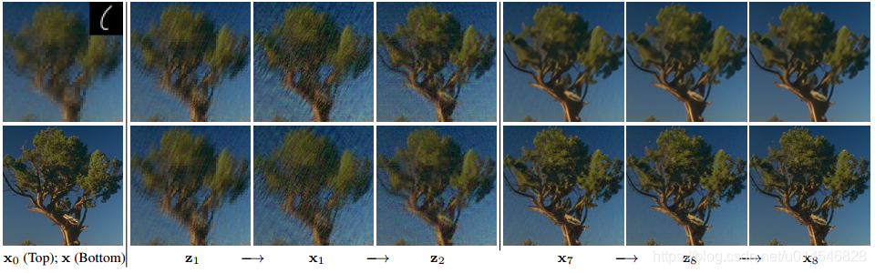 这进一步表明 D 的目标是消除模糊核引起的退化。此外,可以看到 USRGAN 在前几个迭代中与 USRNet 有类似的结果,但是在最后几个迭代中将恢复微小的结构和精细的纹理。