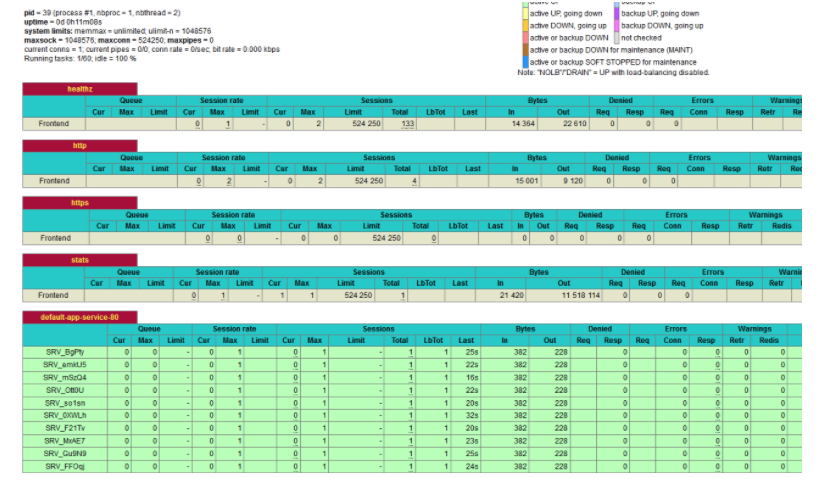 HAProxy提供大量有关流向你的集群的流量指标。在HAProxy Stats页面上,你将找到用于跟踪请求率、响应时间、活动连接、成功和错误响应以及通过的数据量的统计数据。这篇文章(https://www.haproxy.com/blog/exploring-the-haproxy-stats-page/ )介绍了所有提供的指标,这些指标也是通过Prometheus端点暴露的。