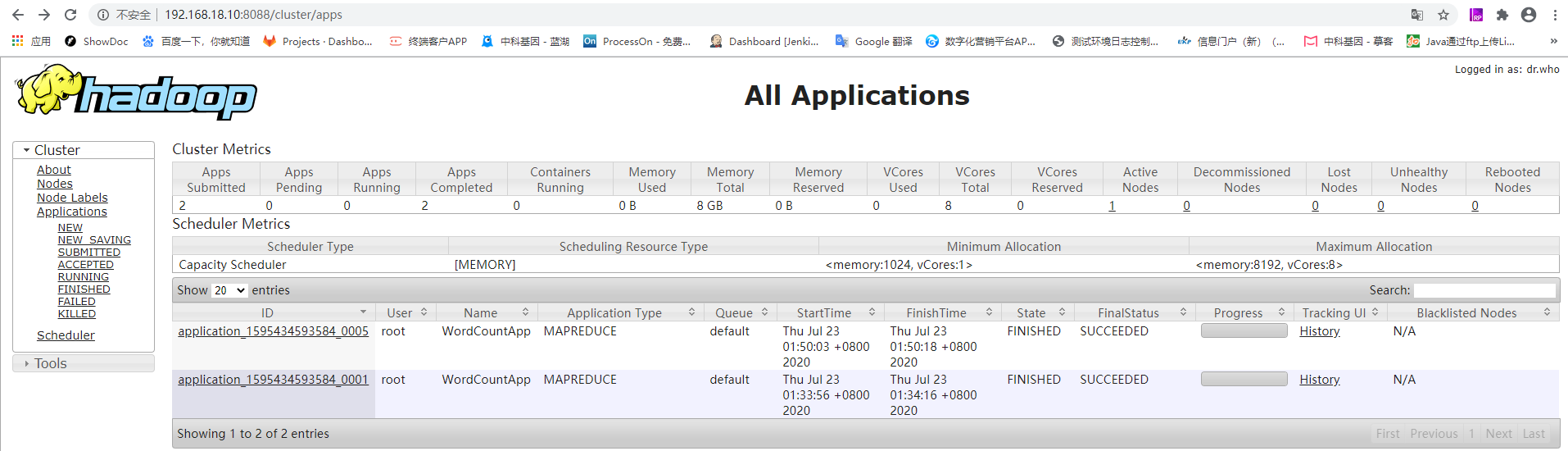 20/07/23 01:33:56 INFO mapreduce.Job: The url to track the job: http://localhost:8088/proxy/application_1595434593584_0001/