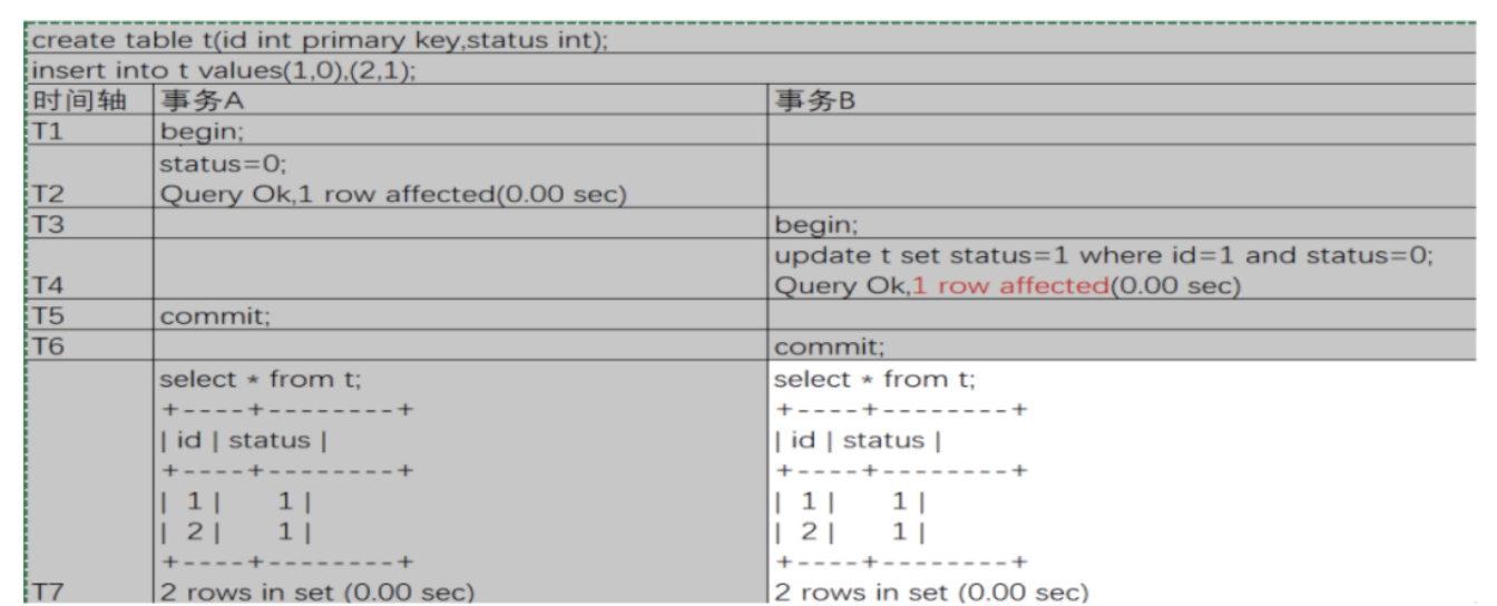 对于事务 B 来说,update 语句执行后数据库返回 1 row affected,不过显而易见,这个语句提交时并没有发生更新,也即此时的 Affected rows 是不可信的。如果业务还希望使用 affected rows 来做程序执行逻辑的判断条件,可行的方式是:显示事务下,先判断事务成功的条件,然后再根据 affected rows 进行逻辑处理。而隐示事务下,可以直接使用 affected rows 进行逻辑处理。