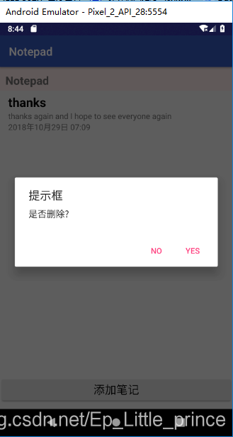 课程作业需要,于是忙活好几天抄了一个简单的记事本,使用已学内容包括Android UI布局,Activity的跳转,SQLite数据库。