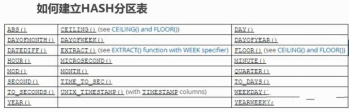 - KEY 分区:类似于按 HASH 分区,区别在于 KEY 分区只支持计算一列或多列,且 MySQL 服务器提供其自身的哈希函数。必须有一列或多列包含整数值。