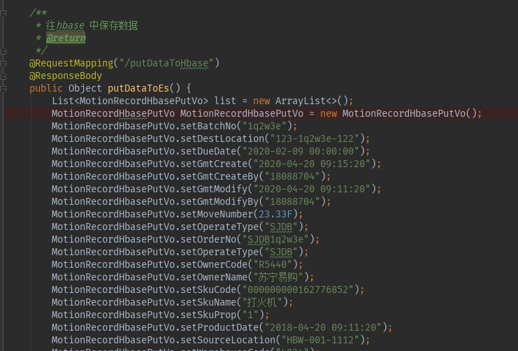 单个提交实体数据到Hbase |