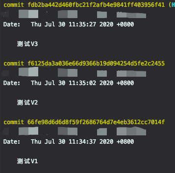 修改代码,并执行3次commit,可以看到已经有3次提交日志