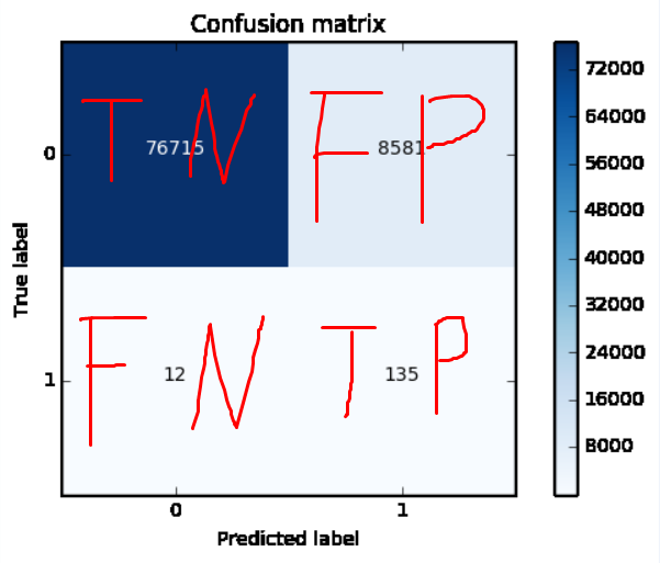 (4)若一个实例是负类并且被预测成为负类,即为真负类(True Negative TN)