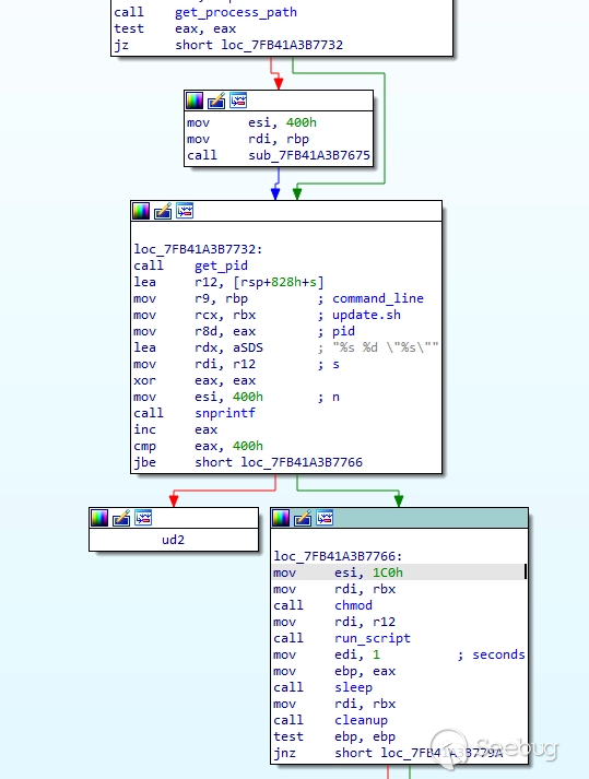 然后它将解析当前进程的PID和用作脚本参数的路径,并通过运行以下命令继续执行脚本:/ bin / sh -c ./update.sh