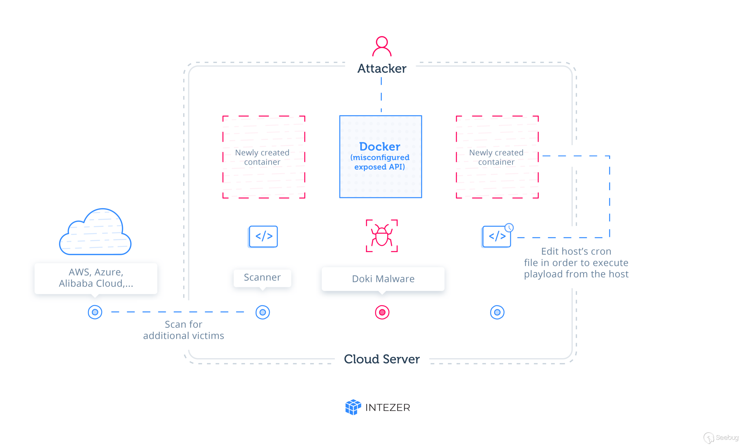 一种流行的技术是滥用配置错误的Docker API端口,攻击者在其中扫描可公开访问的Docker服务器,并利用它们来设置自己的容器并在受害者的基础设施上执行恶意软件。