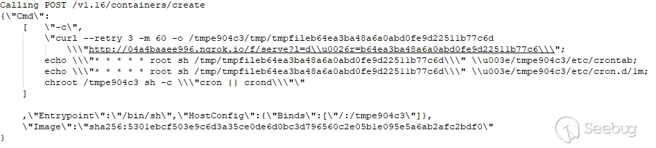 Ngrok是一项提供安全隧道的服务,可在本地服务器和公共Internet之间建立连接。攻击者滥用Ngrok来设计寿命短的唯一URL,并在攻击过程中将它们传递给基于curl的图像,从而使用它们下载有效载荷。下载的有效内容保存在容器的/ tmpXXXXXX目录中。