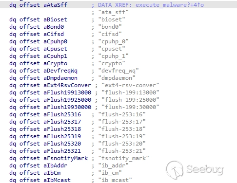 如果通过STDIN接收到数据,则该恶意软件会将自身保存为/ tmp下的文件,并从预定义的Linux内核模块列表中随机选择其名称。