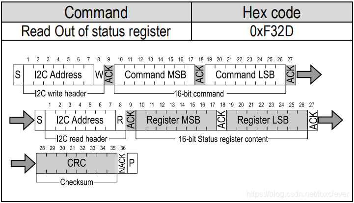状态寄存器的第15、11、10、4位等是我们关系比较多的,这些报警标志位可以通过命令清楚。根据上述数据字节流图我们可以得到读状态寄存器的函数如下: