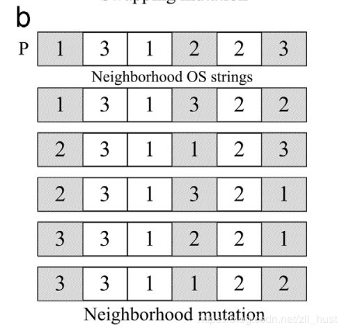 OS String介绍两种crossover方法,分别为POX(precedence operation crossover )和JBX(job-basedcrossover ),每次迭代分别以50%的概率选择其中一个实行。