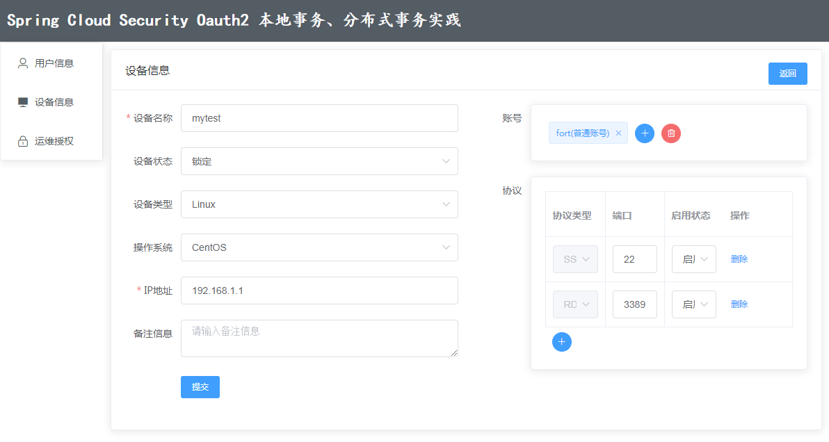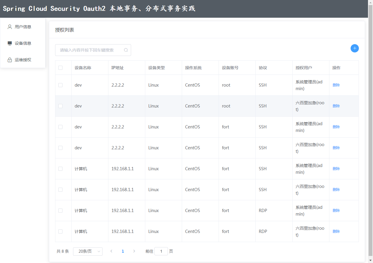 本示例模拟服务器设备运维授权功能,使用seata来实现分布式事务一致性。