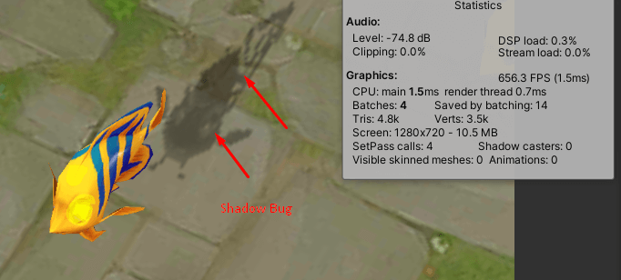 Q2:其实第一部分没有解决,用了Render Texture去投影,只是都没有处理的情况下,Unity 2019会显上上面那张图的效果,影子也会跟着动,2019以下的版本则是静态Mesh的轮廓和不会动的阴影,GPU Skinning的Shader都已经封装过,直接在Shader上加阴影的Pass是不会有任何效果的。