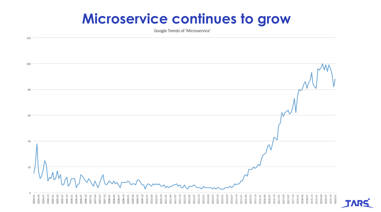 单致豪以谷歌搜索“microservice”的趋势为例,展示了微服务的发展势头: