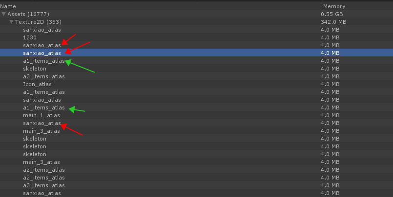 4)资源被打成AssetBundle后,图集被多次加载在内存中
