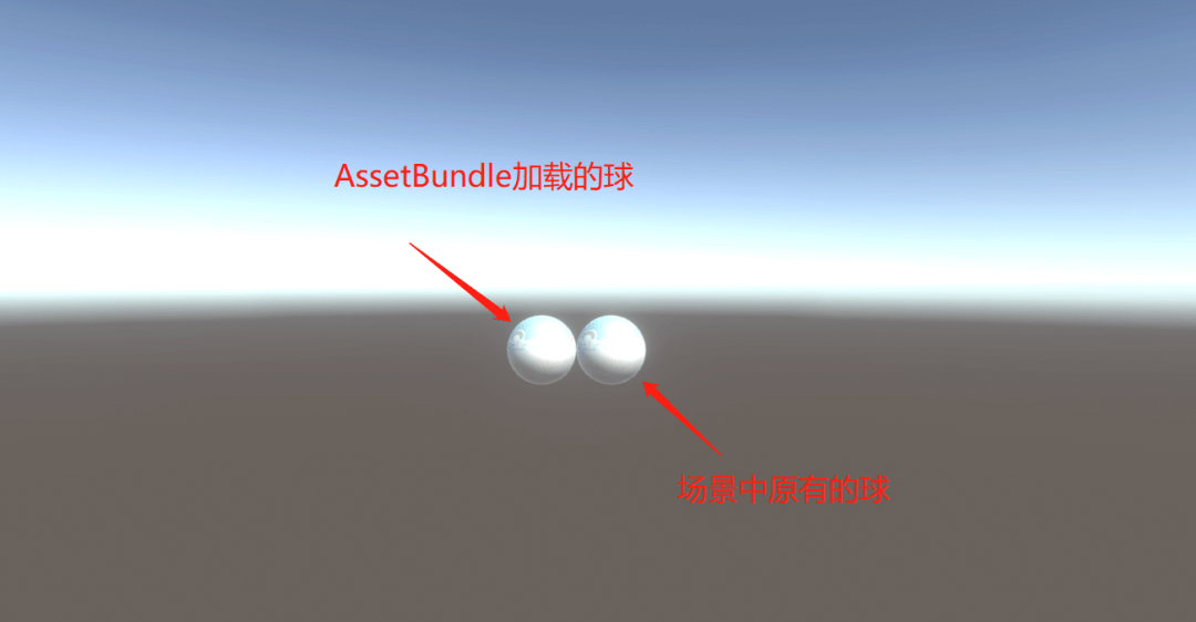 另外再做了一个对比试验,将平台切换成PC。在编辑器里,场景中原有的球和AssetBundle加载出来的球的渲染就是完全一样的了。