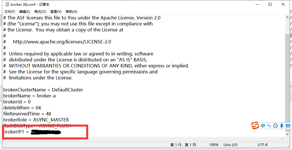 brokerIP1:配置broker所在服务器的ip地址,以便Name Server连接