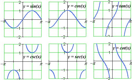 三角函数用直角三角形的两个边的比值,或者是单位圆有关的各种线段的长度来定义直角三角形的内角:主要的几个函数图象如下: