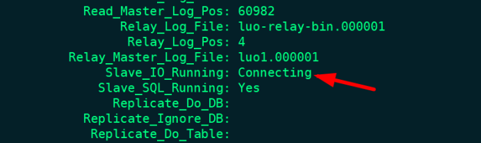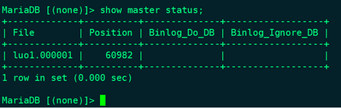 mysql> change master to master_host='192.168.237.130',master_user='repl',master_password='129615',master_log_file='luo1.000001',master_log_pos=60982;