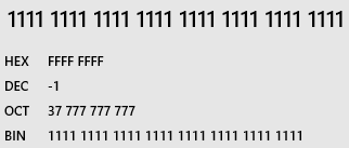 在上面的例子中我们已经看到了二进制补码的表示,-1 = 1111 1111 1111 1111,怎么获得补码表示,我们一般可以通过负数对应的正数获取反码,然后加 1 获得补码。