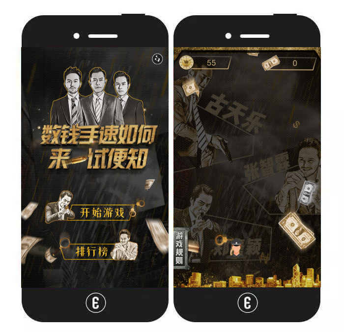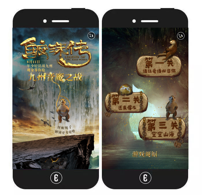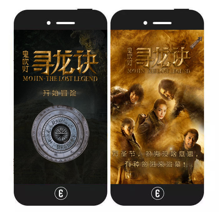 内容特色:该H5将万圣节与电影《寻龙诀》联系在了一起,整体氛围把控得很好。用户进入首页后,可根据一系列神秘提示进入一个小游戏。小游戏的主要玩法为:点击石棺内不断飞出的“鬼”。游戏结束后,用户可再来一局或查看电影海报并将作品分享出去。