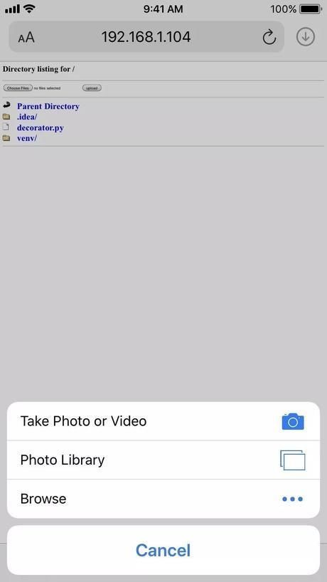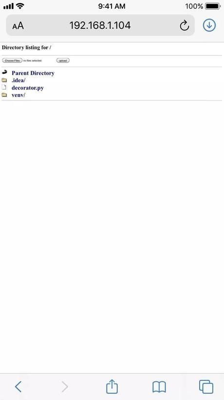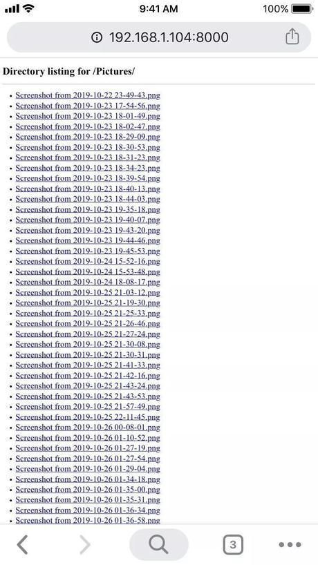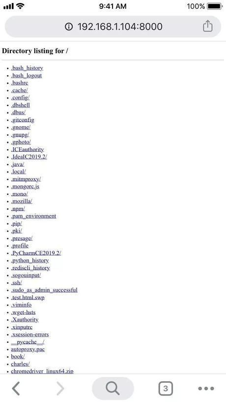 当你执行完这个命令的时候,你的电脑会监听 8000 端口,只要访问这个端口(手机和电脑需要在同一局域网下),你的手机就可以获取到你这个电脑的所有文件: